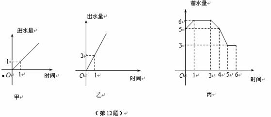 12.一水池有2个进水口,1个出水口,每个进水口进水量与时间的关系如图甲所示,出水口出水量与时间的关系如图乙所示.某天0点到6点,该水池的蓄水量与时间的关系如图丙所示.