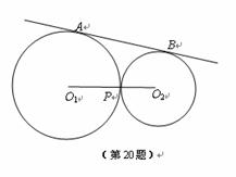 如图,⊙O1和⊙O2外切于点P,直线AB是两圆的外共切线,A,B为切点,试判断以线段AB为直径的圆与直线O1O2的位置关系,并给出证明.