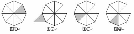 9.如果在正八边形硬纸板上剪下一个三角形(如图①中的阴影部分),那么图②,图③,图④中的阴影部分,均可由这个三角形通过一次平移、对称或旋转而得到.要得到图②,图③,图④中的阴影部分,依次进行的变换不可行的是( )图形变换