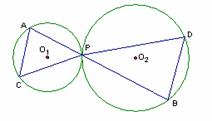 13、已知如图:⊙O1与⊙O2外切于点P, 直线AB经过点P交⊙O1于A,交⊙O2于B,点C、D分别为⊙O1、⊙O2上的点,且∠ACP=65°,则∠BDP= 。
