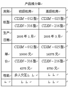 某“希望学校”为加强信息技术课教学,拟投资建一个初级计算机房和一个高级计算机房,每个机房只配置1台教师用机,若干台学生用机.现有厂方提供的产品推介单一份,如下表.