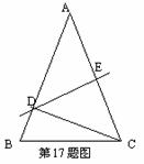 17.如图,△ABC中,AB=AC,∠A=45°,AC的垂直平分线分别交AB,AC于D,E两点,连接CD。如果AD=1,那么tan∠BCD=__________。