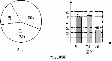 某农机公司为更好地服务于麦收工作,按图1给出的比例,从甲、乙、丙三个工厂共购买了150台同种农机,公司技术人员对购买的这批农机全部进行了检验,绘制了如图2所示的统计图。