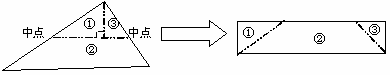 (1)对任意三角形,设计一种方案,将它分成若干块,再拼成一个与原三角形面积相等的矩形。