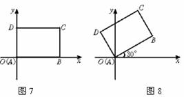 4.先将一矩形ABCD置于直角坐标系中,使点A与坐标系的原点重合,边AB、AD分别落在x轴、y轴上(如图7),再将此矩形在坐标平面内按逆时针方向绕原点旋转30°(如图8),若AB=4,BC=3,则图7和图8中点B点的坐标为 点C的坐标 。