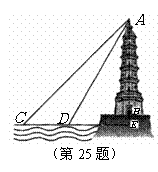 (9分)某中学初三(2)班数学活动小组利用周日开展课外实践活动,他们要在湖面上测量建在地面上某塔