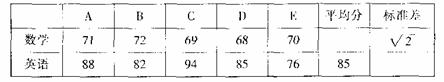 22一次期中考试中A、B、C、D、E五位同学的数学、英语成绩等有关信息、如下表所示: