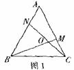 ①如图1,在正三角形ABC中,M,N分别是AC、AB上的点,BM与CN相交于点O,若∠BON=60°.则BM=CN: