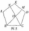 ②如图5,在正五边形ABCDE中,M、N分别是DE,AE上的点,BM与CN相交于点O,∠BON=108°时,试问结论BM=CN是否还
