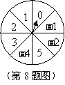 8.由一个圆平均分成8个相等扇形的转盘,每个扇形内标有如图数字,固定指针,转动转盘,则指针指到负数的概率是 .
