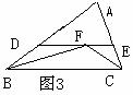 如图3 ,在△ABC中,已知∠B和∠C的角平分线相交于点F,过点F做DE//BC,交AB于点E。若BD+CE=9,则线段DE的长 ( )