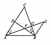 已知:如图,D是AC上一点,BE∥AC,BE=AD,AE分别交BD、BC于点F、G,∠1=∠2。
