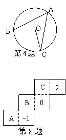 4、如图,已知圆心角∠BOC=100°,则圆周角∠BAC的度数为 ( )