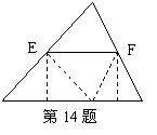 14.我们曾经像右图那样折叠一个三角形纸片,把三角形的三个角拼在一起,用这种方法我们可以证明定理“________________________”。在折叠过程中折痕EF是三角形的__________线。