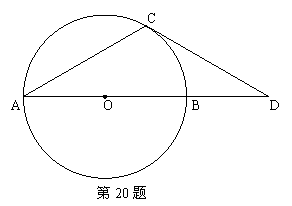 (本小题10分)如图AB是⊙O的直径,点D在AB的延长线上,且BD=OB,点C在⊙O上,且∠CAB=30°。求证:CD是⊙O的切线。