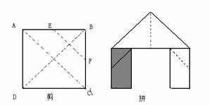 19. 如图,正方形硬纸片ABCD的边长是4,点E、F分别是AB、BC的中点,若沿左图中的虚线剪开,拼成如下右图的一座“小别墅”,则图中阴影部分的面积是( )。