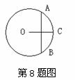 8、如图,⊙O的直径为10 cm,弦AB垂直平分半径OC,则弦AB长为 ( )