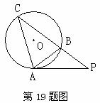 19、如右图,P是⊙O的弦CB延长线上一点, 点A在⊙O上,且∠PCA=∠BAP.