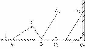 21、如图,在一个横截面为Rt△ABC的物体中,∠ACB=90°,∠CAB=30°,BC=1米.工人师傅要把此物体搬到墙边,先将AB边放在地面(直线l)上,再按顺时针方向绕点B翻转到△A1BC1位置(BC1在l上),最后沿BC1的方向平移到△A2B2C2的位置,其平移的距离为线段AC的长度(此时A2C2恰好靠在墙边)。