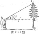 14.如图,身高1.6m的小丽用一个两锐角分别为300和600的三角尺测量一棵树的高度,已知她与树之间的距离为6m,那么这棵树高大约为(结果精确到0.1m,其中小丽眼睛距离地面高度近似为身高)___米.