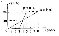 路程y(千米)与时间t(小时)的函数图象,两地相距80千米,请根据图象回答或解决下列问题: