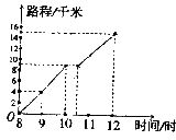 lO.(8分)如图所示为一位旅行者在早晨8时从城市出发到郊外行走的路程与时间的变化图。根据图象回答问题: