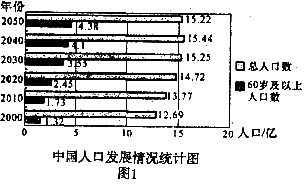 (2)预计到2050年,中国总人口数将达到___,60岁及以上人口数占总人口数的___%(精确到0.01亿);(3分)