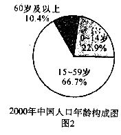 11.(10分)图l和图2是某报纸公布的中国人口发展情况统计图和2000年中国人口年龄构成图,请根据图中提供的信息,回答下列问题: