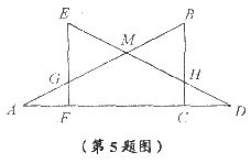 5.小明将两个全等且有一个角为60°的直角三角形拼成如图所示的图形,其中两条较长直角边在同一直线上,则图中等腰三角形的个数是