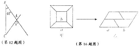 12.如图,射线BA、CA交于点A.连接BC,己知AB=AC,∠B=40°.那么x的值是_______ .