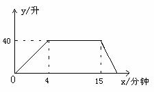某种洗衣机在洗剂衣服时,经历了进水、清洗、排水、脱水四个连续的过程,其中进水、清洗、排水时洗衣机中的水量y(升)与时间x(分钟)之间的关系如图所示。根据图象解答下列问题: