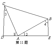 11.如图,△ABC是等腰直角三角形,DE过直角顶点A,∠D=∠E=90°,则下列结论正确的个数有( )