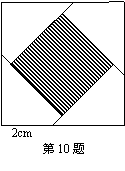 10.现有若干张边长不相等但都大于4cm的正方形纸片,从中任选一张,如图,从距离正方形的四个顶点2cm处,沿45°角画线,将正方形纸片分成5部分,则中间阴影部分的面积是 cm2;若在上述正方形纸片中再任选一张重复上述过程,并计算阴影部分的面积,你能发现什么规律?