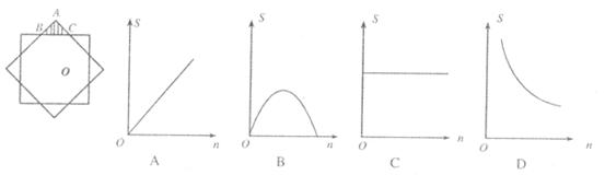 8.如图,两块完全重合的正方形纸片,如果上面的一块绕正方形的中心O做0°-90°的旋转,那么旋转时露出的△ABC的面积(s)随着旋转角度(n)的变化而变化,下面表示S与n的关系的图像大致是