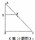 19、如图,已知在△ABC中,DE∥BC,AD=2,BD=4,DE=3,且△ADE的周长为8,则AC的长为 。