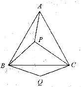 5.(本题6分)。如图,P是等边三角形ABC内的一点,连结PA,PB,PC,以BP为边作∠PBQ=60°,且BQ=BP,连结CQ.