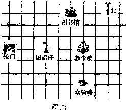 假如图(7)为你所在学校的一张平面示意图,请建立适当的坐标系,并写出图中图书馆,校门等5个建筑设施的坐标. .