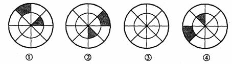 9、分析图①、②、④中阴影部分的分布规律,按此规律在图③中画出其中的阴影部分。