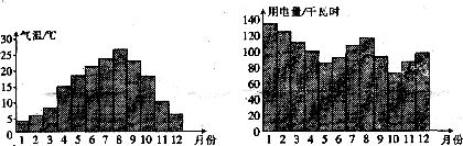 l1.一般家庭用电量(千瓦时)与气温(℃)有一定的关系,如图所示:图(1)表示某年12个月的月平均气温图,图(2)表示某家庭在这年12个月中每个月的用电量,根据这些信息,以下关于该家庭的用电量与其气温间关系的叙述中,正确的是