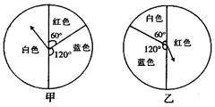 如图,规定同时转动甲乙两个转盘,两指针指向同一色为准(若指针指向分界线或不同色,重转),每人选一色,先转出的胜出。