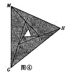 应用:去年在面积为10m2的△ABC空地上栽种了某种花卉.今年准备扩大种植规模,第一次由△ABC扩展成△DEF,第二次由△DEF扩展成△MGH(如图④).求这两次扩展的区域(即阴影部分)面积共为多少平方米?