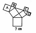 16、如图所有四边形都是正方形,所有三角形都是直角三角形,其中最大的正方形边长为7cm,则正方形A、B、C、D的面积和为