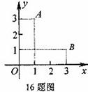 16.如图,已知点A的坐标为(1, 3),点B的坐标为(3, 1)。写出一个图像经过A、B两点的函数表达式 。