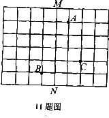 11.在如图所示的方格纸中,每个小正方形的边长为1,如果以MN所在的直线为y轴,以小正方形的边长为单位长度建立平面直角坐标系,使A点与B点关于原点对称,则这时C点的坐标可能是