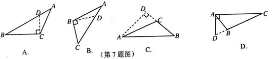 7.如图,△ABC的BC边上的高,下列画法中正确的是