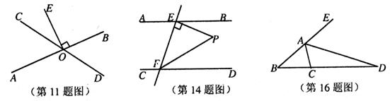 11.如图所示:直线AB和CD相交于点O。OE⊥AB于O,且∠COE=40°,则∠BOD=______