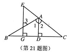 21.(本小题满分8分)如图,已知AD⊥BC于D,EG⊥BC于G,且∠E=∠3,那么AD平分∠BAC吗?为什么?
