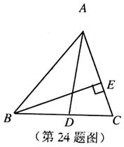 24.(本小题满分10分)如图,已知在△ABC中,AD平分∠BAC,BE是高,∠BAC=60°,∠EBC=20°,试求∠ADC的度数.