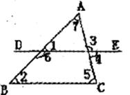 如图中,已知四条直线AB,BC,CA,DE,则: