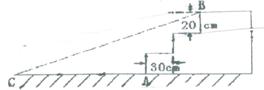 16、如图,某公司入口处原有三级台阶,每级台阶高为20cm,深为30cm,为方便残疾人士,拟将台阶改成斜坡,高台阶的起点为A,斜坡的起始点为C(如图所示),现将斜坡的坡角∠BCA设计为12°,那么斜坡起点C应离A点多远?(精确到1cm,sin12°=0.208,cos12°=0.978,tan12°=0.213)